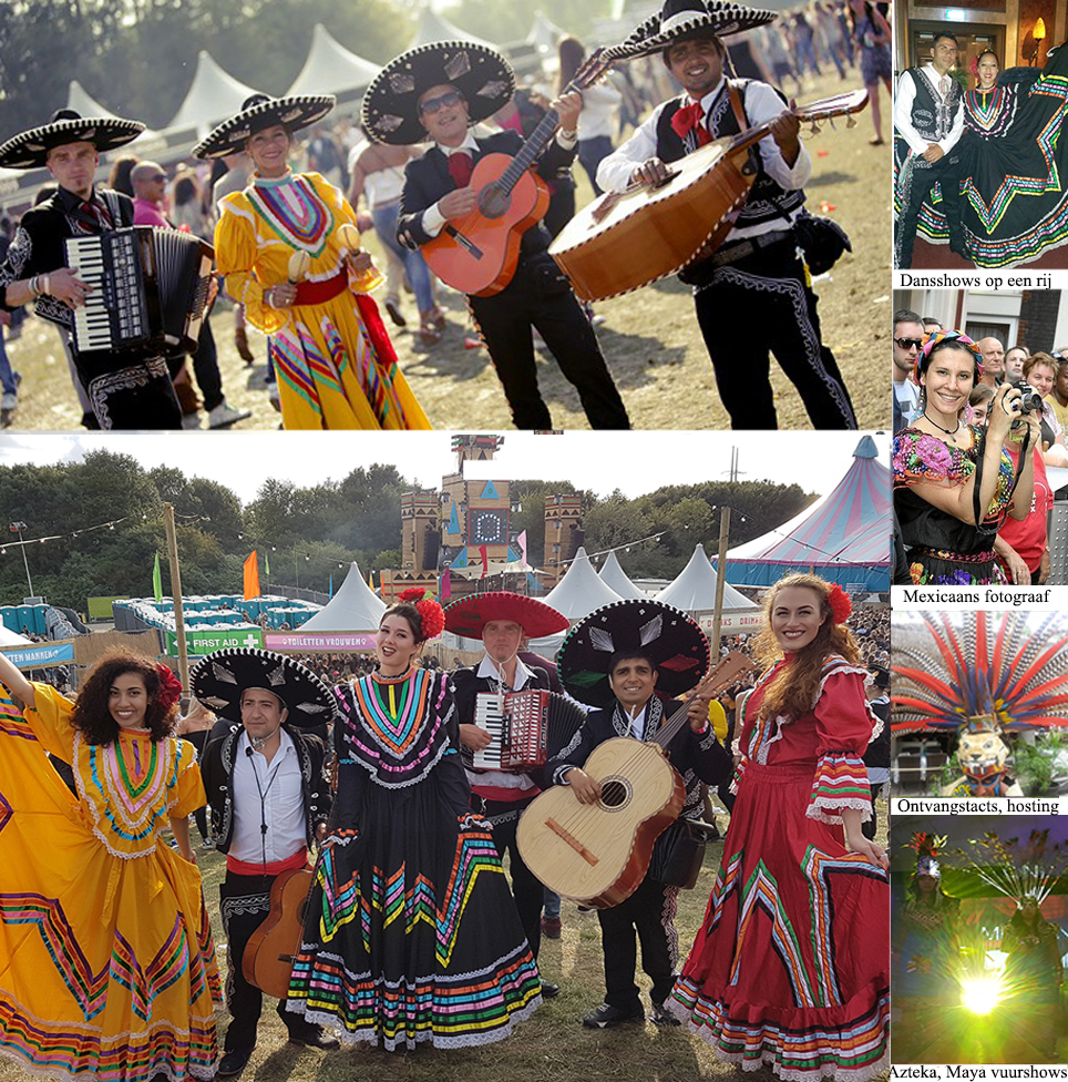 Spaanse dansen uit vroeger tijden zijn een uniek spektakel! Stelt u zich eens voor: op uw feest of evenement een ontvangst door Maya-koningen en -krijgers, tevens muzikanten, en later een spectaculaire Maya vuurdansshow, Inca-danseressen; kortom een mysterieus spektakel, met de mooiste kostuums. Een waar Zuid-Amerikaans indianenfeest! Ook voor een meet-and-greet met slangen en indianen! Optredens en foto’s met bijzondere rimboeslangen. Geschikt voor kleine en grote feesten, voor parades en winkelcentra promotie!